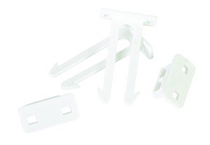 Az akasztós részt (lakat) fel kell csavarozni a fiók helyén a felső lap belsejére, a kampós részt (lakatszárak) pedig a fiók elejére belülről. Amikor betoljuk a fiókot, a kampó beakad az akasztóba, így megakadályozza a fiók kinyitását. A fiók teljes kinyitásához a két kampót össze kell szorítani, míg ki nem akad az akasztóból. 2db/csomag