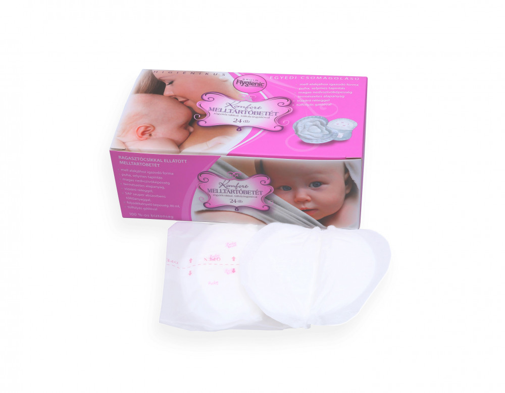 Higiénikus, ragasztócsíkkal ellátott melltartóbetét.Kiváló nedvszívó képességű,eldobható melltartóbetét.Megakadályozza a fehérnemű átnedvesedését.Biztonságos,kényelmes viselet. 24db/csomag.