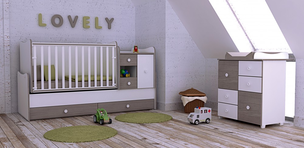 – a kiságy, a komód és a rácsok levételével egyszerűen átalakítható ifjúsági heverővé és éjjeliszekrénnyé