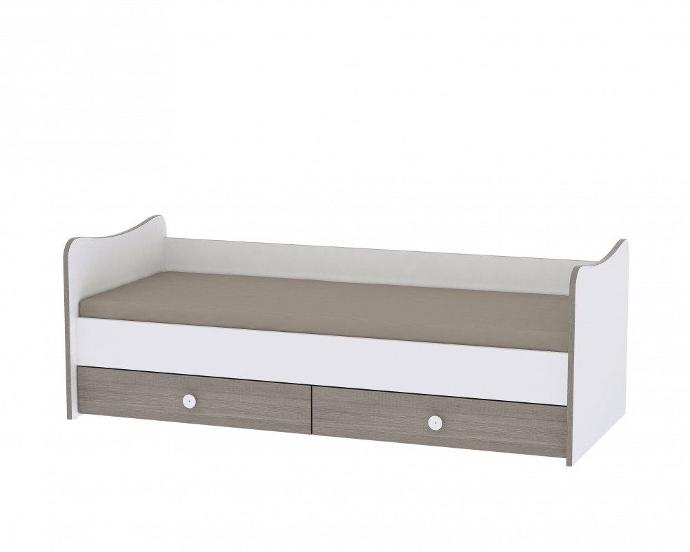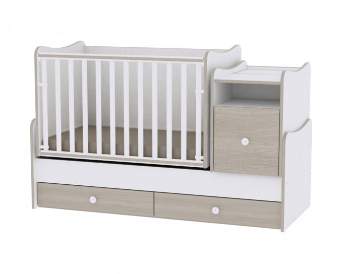 – Amikor a gyermeknek már nincs szüksége rácsos kiságyra, a komód és a rácsok levételével egyszerűen átalakítható ifjúsági heverővé és éjjeliszekrénnyé.