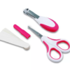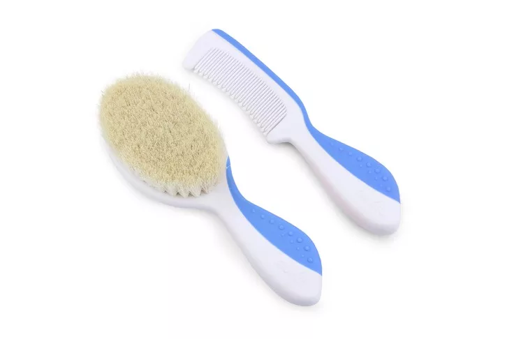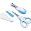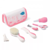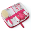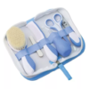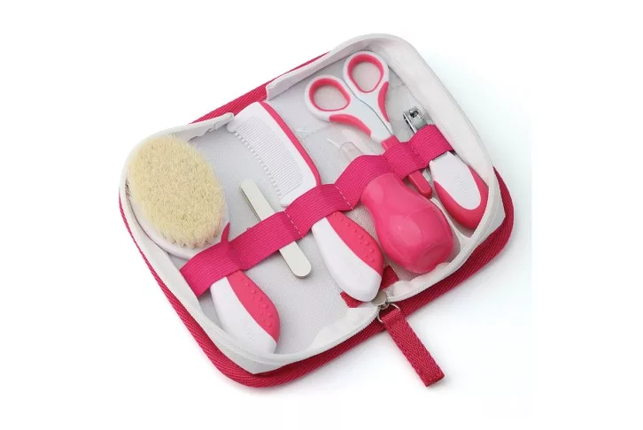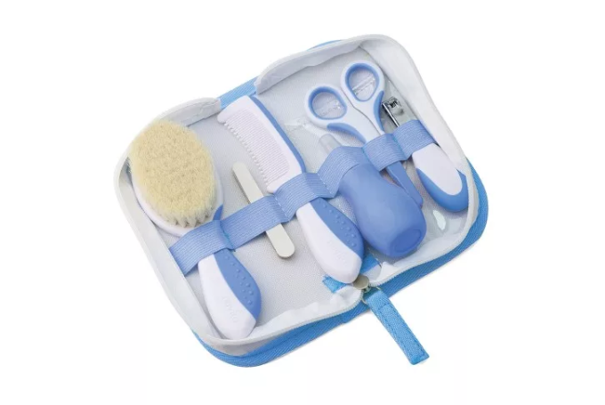 - Természetes szőrből készült kefe, fésű, lekerekített élű olló és körömcsipesz nikkelmentes, rozsdamentes acélból, körömreszelők és orrszívó mindez egy praktikus neszeszerben.